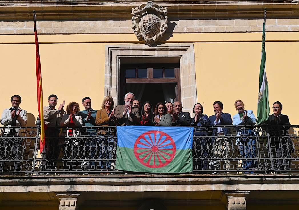 Jerez ha vuelto a ser escenario de la conmemoración del Día Internacional del Pueblo Gitano, una efeméride que cada 8 de abril busca implicar a la sociedad en la consecución de la igualdad de oportunidades. El primer teniente de alcaldesa, Agustín Muñoz, junto a representantes de la Corporación Municipal y de la Fundación Secretariado Gitano, ha presidido los actos institucionales que han incluido la lectura de un manifiesto en el Salón Noble y la colocación de la bandera gitana en la fachada del consistorio.